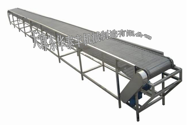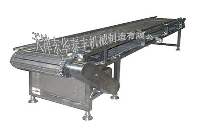 6、鏈板輸送機一般都可以直接用水沖洗或直接浸泡在水中,設備清潔方便,能滿足食品、飲料行業對衛生的要求;